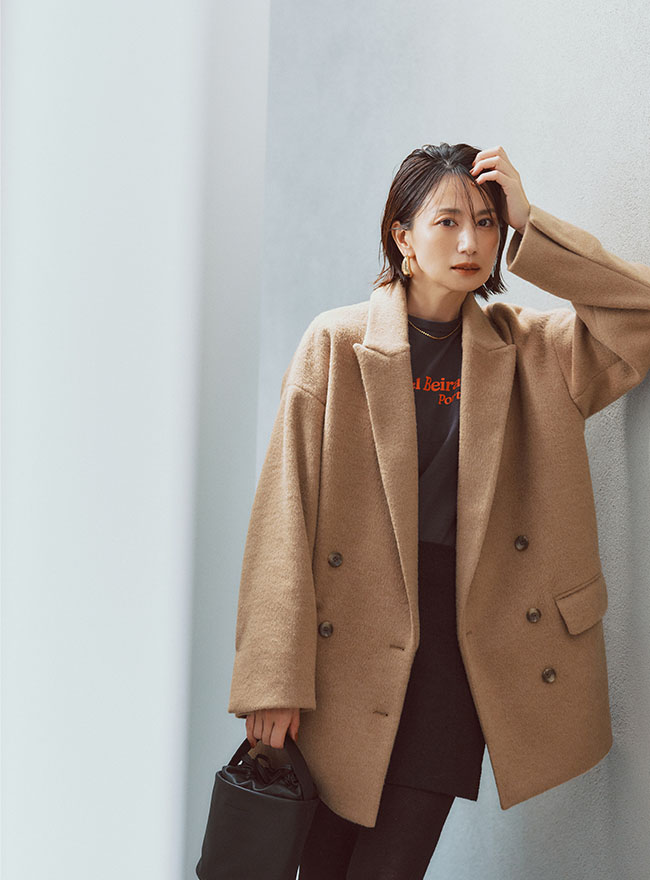 - シャープな襟やボタン位置、ディテールにこだわり、洗練されたマニッシュな印象に仕上げました。