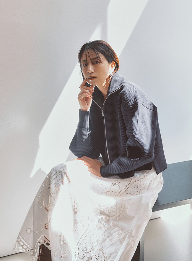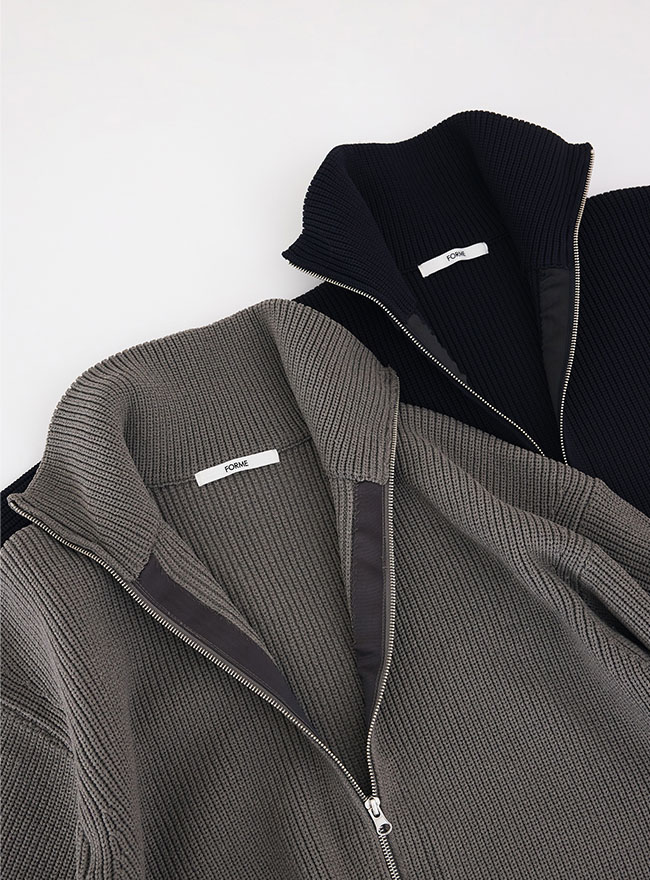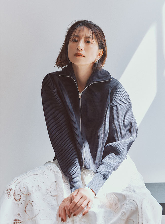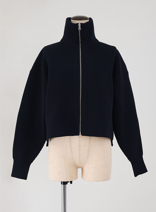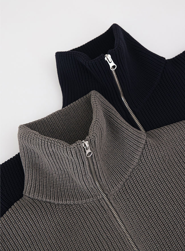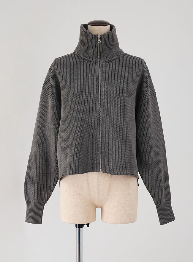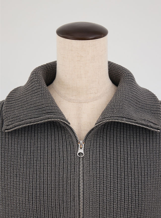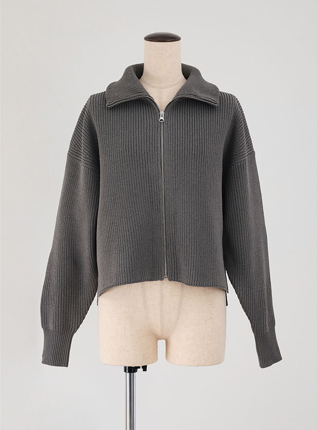 できるジップニットカーディガン- フルジップでハイネック風にも、ジップを下ろして襟付きニットとしてもアレンジ自在。