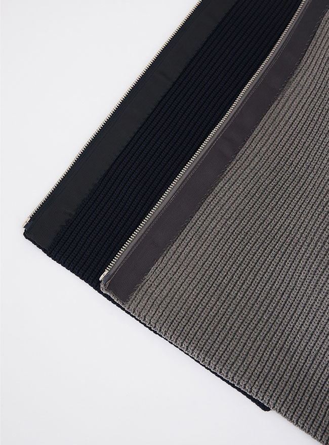 - 弾性ポリエステルを使用したローゲージの畦編みニットです。