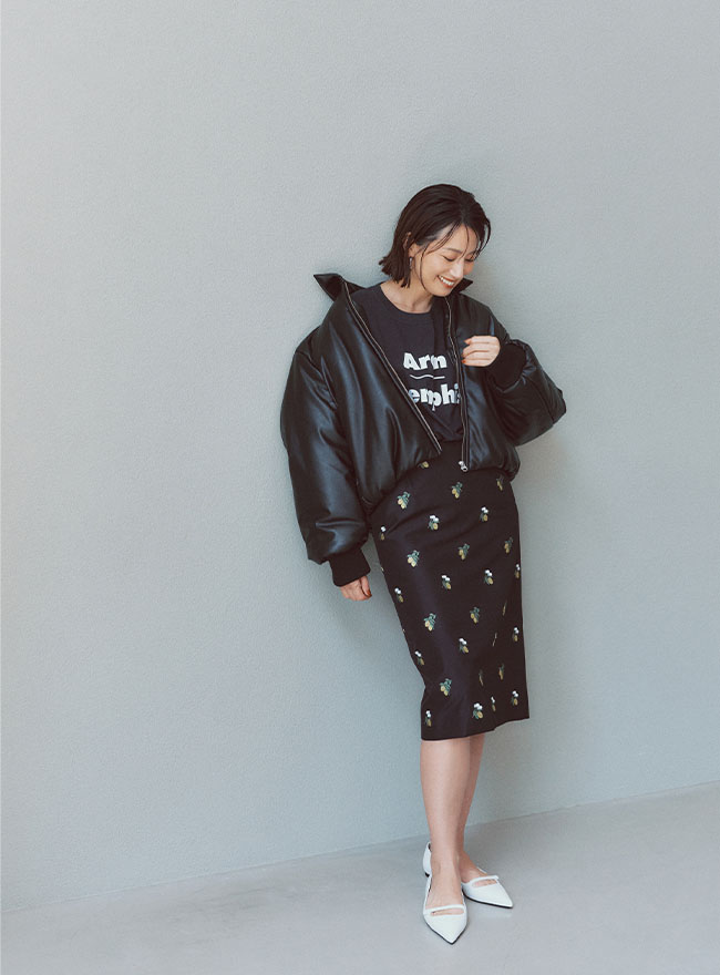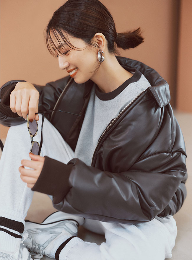 - 襟は中綿が入りながらも、コンパクトなバランスで、きれいめな印象を与えます。