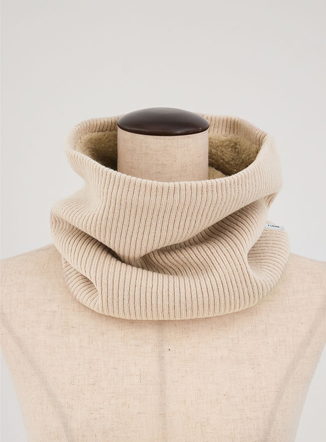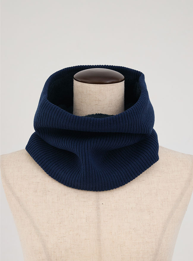 以前大人気だったネックウォーマーがシックな装いにアップデートして再登場! - 表地が12ゲージのストレッチ性のあるリブ編みハイゲージニット、裏地がボアフリース生地を使用しているので、首元を柔らかく包み込みしっかり温めます。