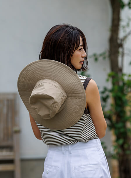 - タウンでのお洒落使いから、ビーチやキャンプなどアクティブシーンまで大活躍のハットです。