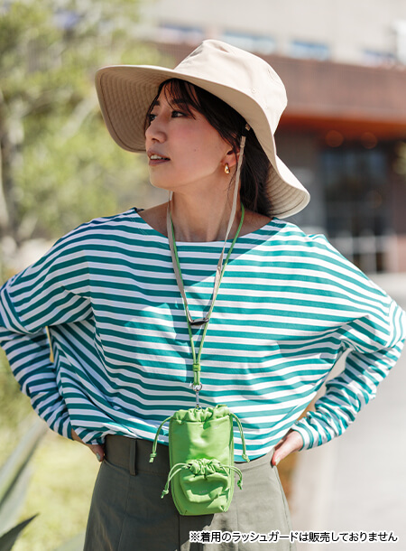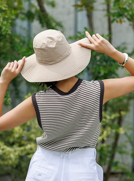 - 広めのツバは紫外線からしっかりカバーしながらも、女性らしさを演出します。