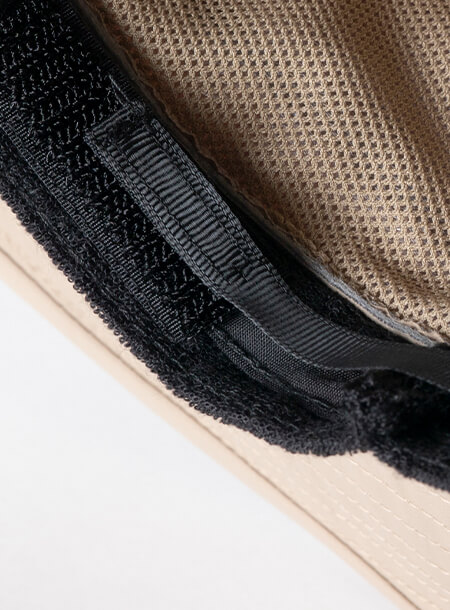 - 裏側にアジャスターが付いているので、1㎝前後小さくするサイズ調整ができます。