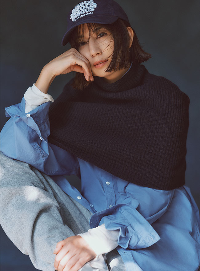 - ハイネックで首元を温かく包み込み、クシュっとたるませたアレンジスタイルもおすすめです。