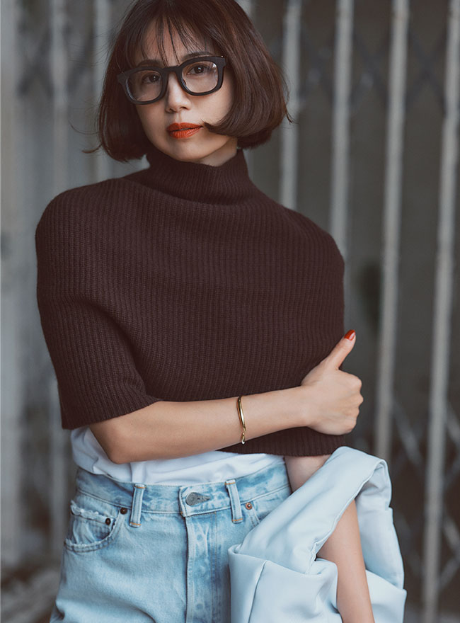 普段のコーディネートをモードに格上げするリブスヌード