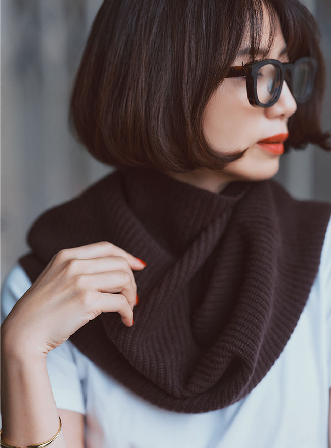 - カシミヤ混の素材で、温かさと柔らかさを兼ね備えた身体を包み込むリブスヌードニット。