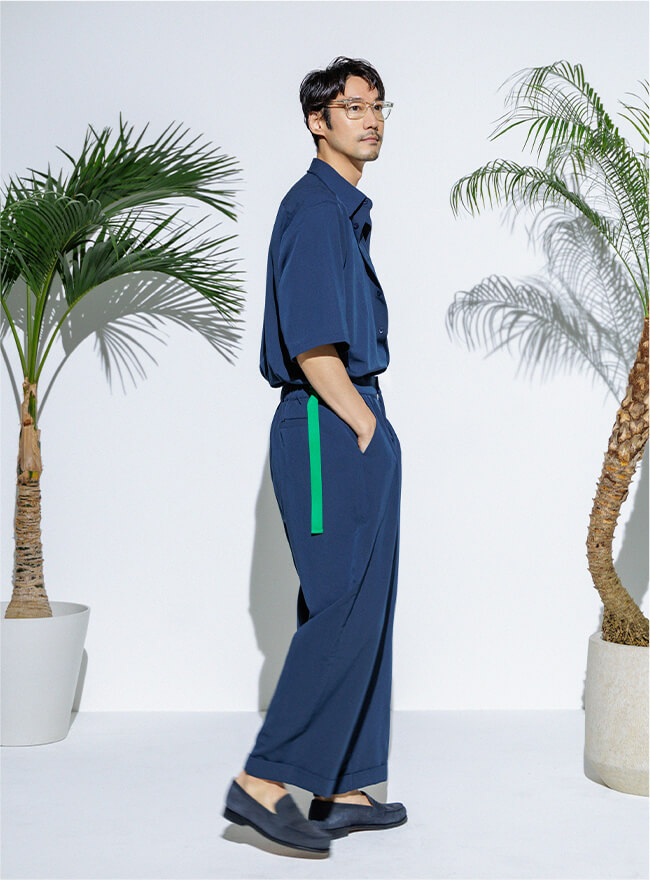 - 同じ素材のパンツとのセットアップもおすすめです。