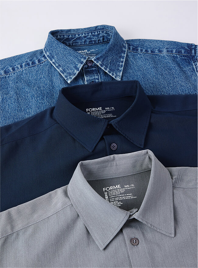 - グレー・ネイビー・デニムの3色展開、M・L・XLの3サイズ。