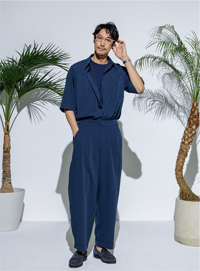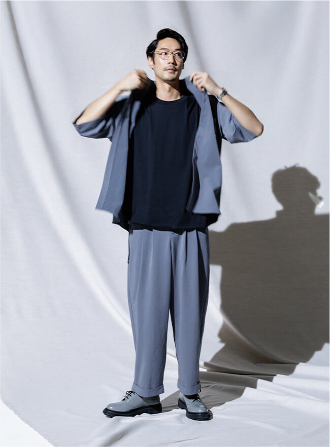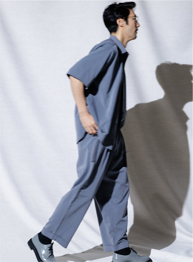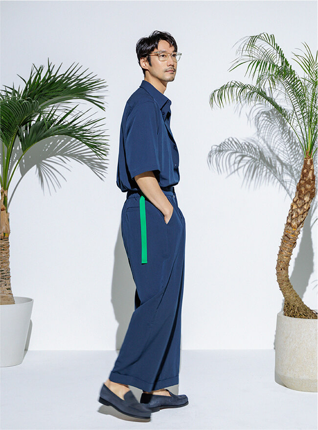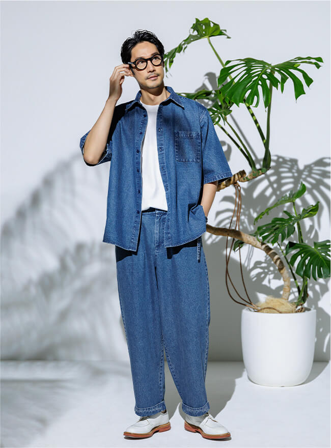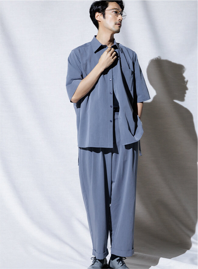 - 同じ素材のシャツとのセットアップもおすすめです。