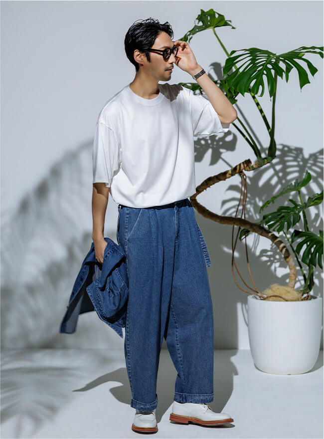 - ゆったりとしたタック入りのワイドストレートシルエット。
