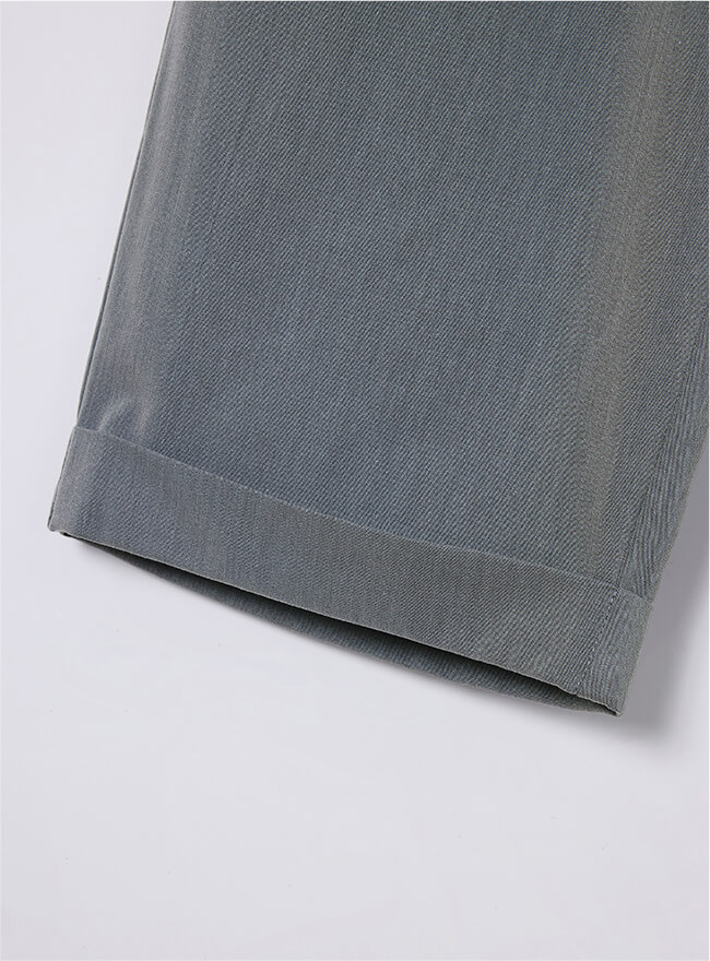 - 長すぎない絶妙な丈感で、裾は折り返しダブル仕様。