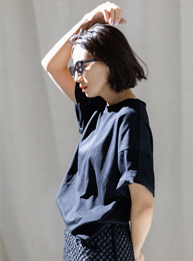 - 肩はドロップショルダーデザインで、程よい抜け感とこなれ感を演出。