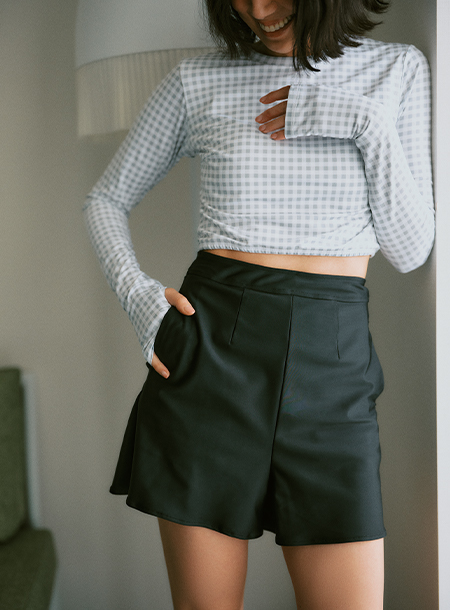 - ヘルシーに見えるショート丈で、ティーンから大人まで幅広く着用可能。
