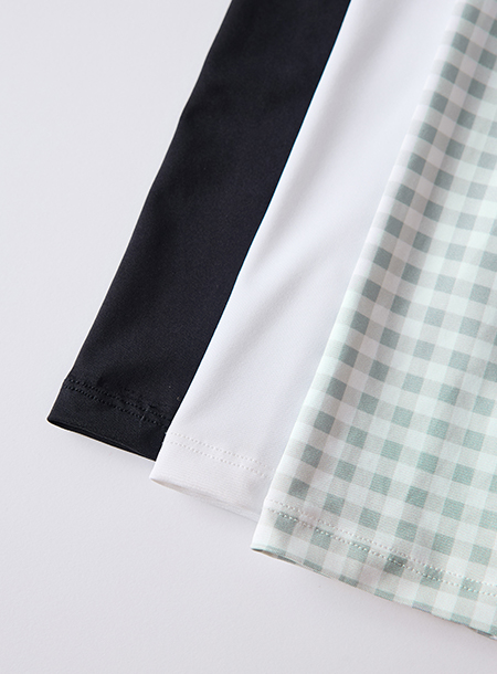 - 裾にゴムが入っており、着脱しやすい点もポイント。