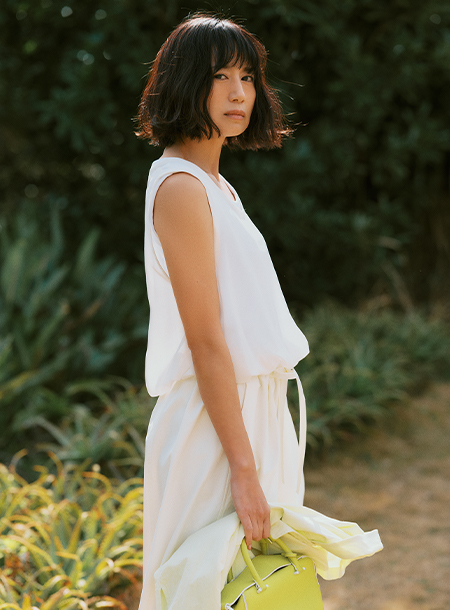 - シアーで綺麗な印象を与えるシフォン素材を使用。