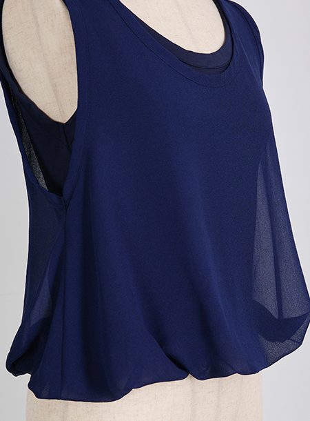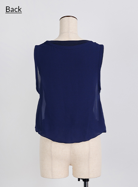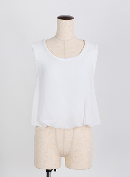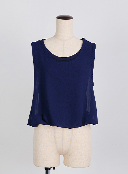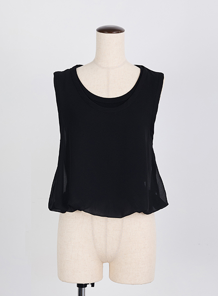 - 1枚でお洒落なレイヤードスタイルがきまる2枚仕立てのノースリーブトップスです。