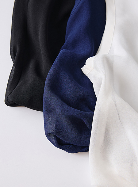 - ホワイト・ネイビー・ブラックに同色のシフォン生地の3色展開、フリーサイズ。