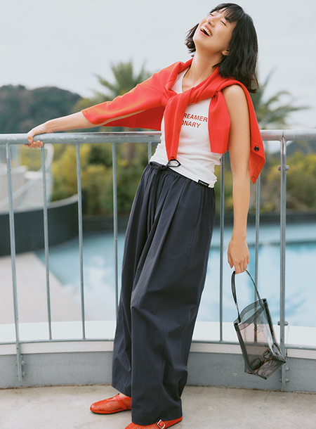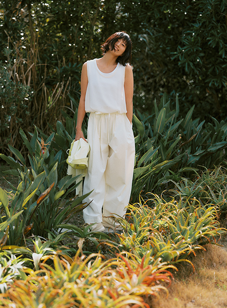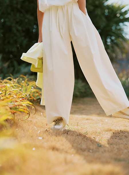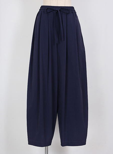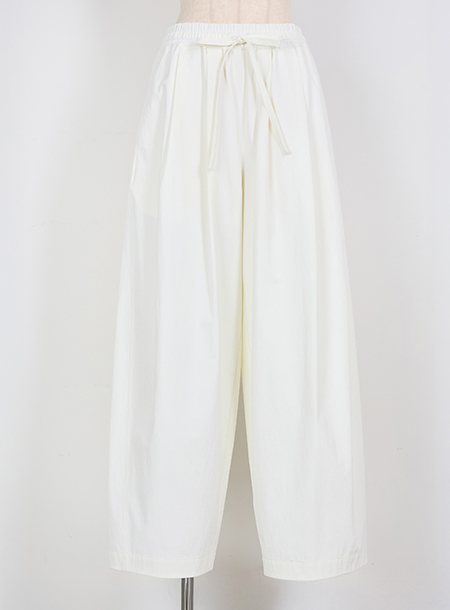 - 全体的にゆったりとしたサイズ感と、ウエストはゴム仕様でノンストレスな着心地を実現。