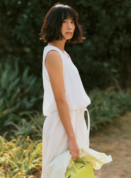 - トップスをインするスタイルなどとのバランスがよく、今季のレイヤードノースリーブトップスとのコーディネートもおすすめです。