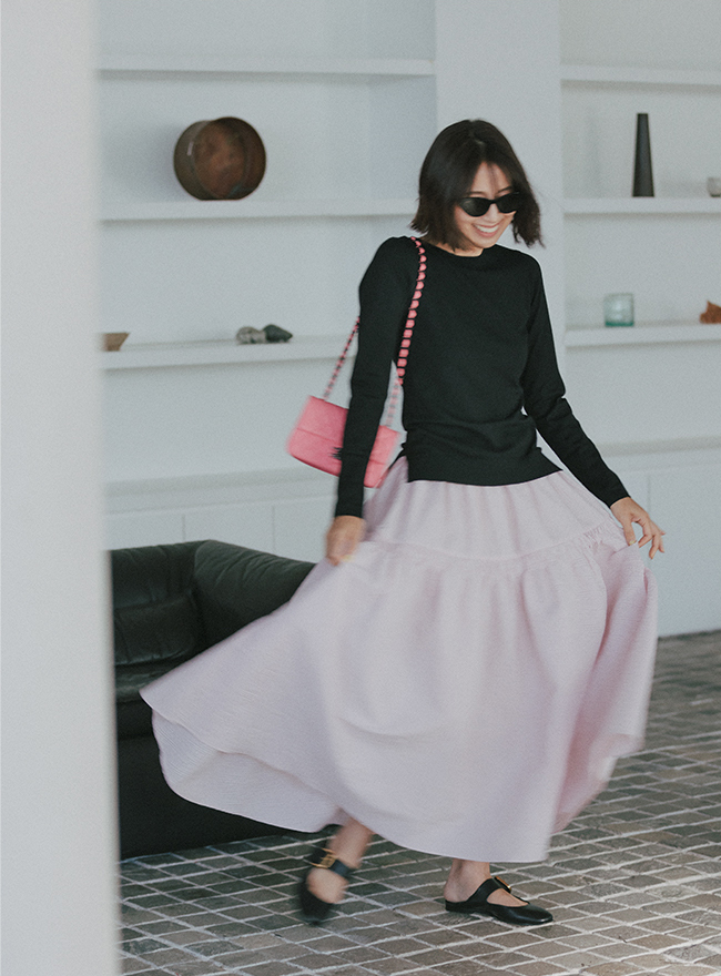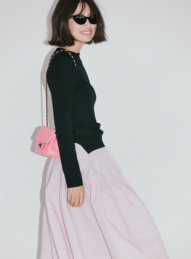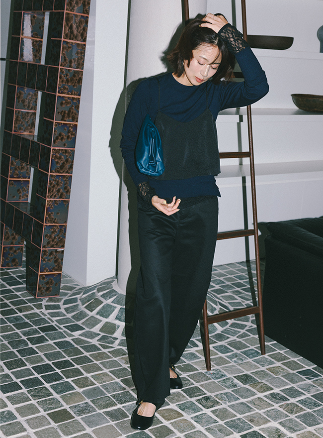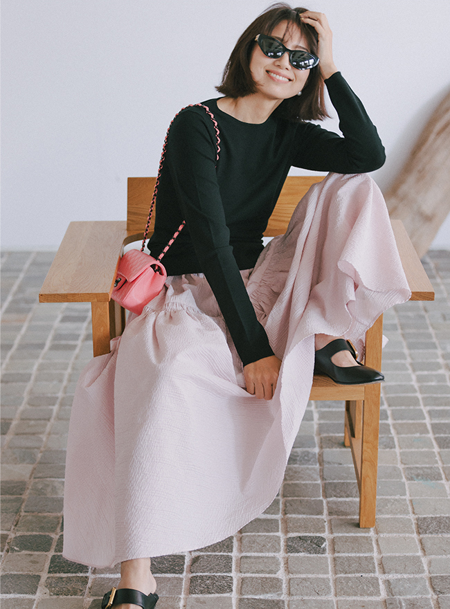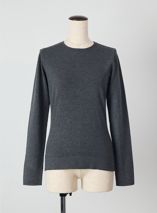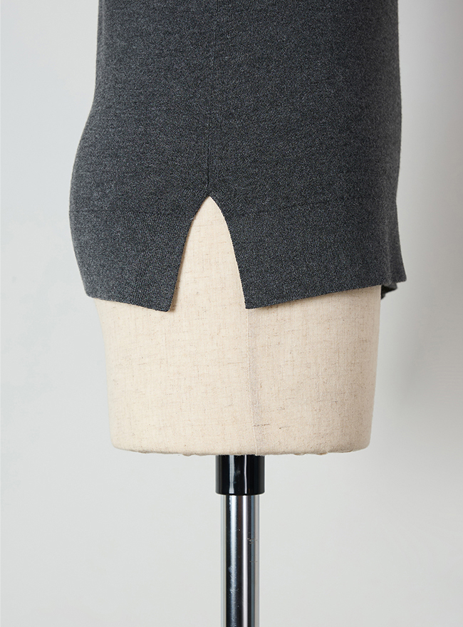 - 身体のラインを拾い過ぎない身幅で、裾は両サイドにスリットを入れすっきりと見せ、ネックと袖口は細いリブを施しシンプルながらも女性らしく華奢見えが叶うフォルムに。