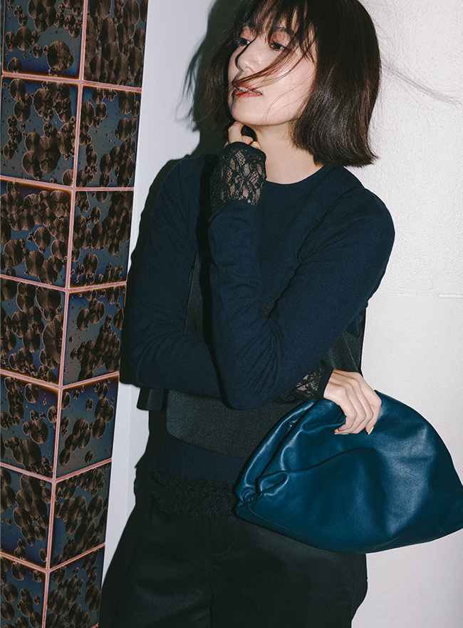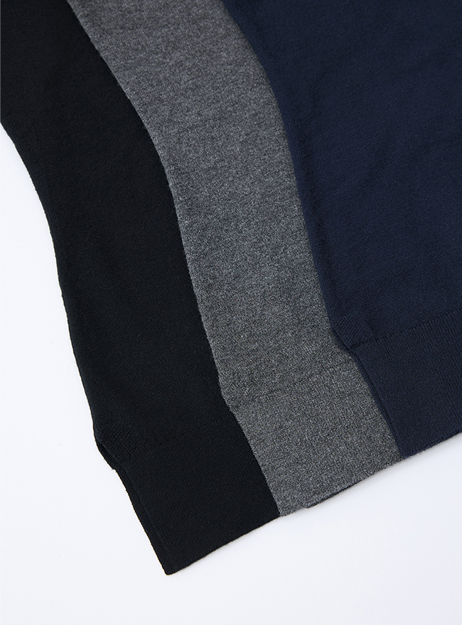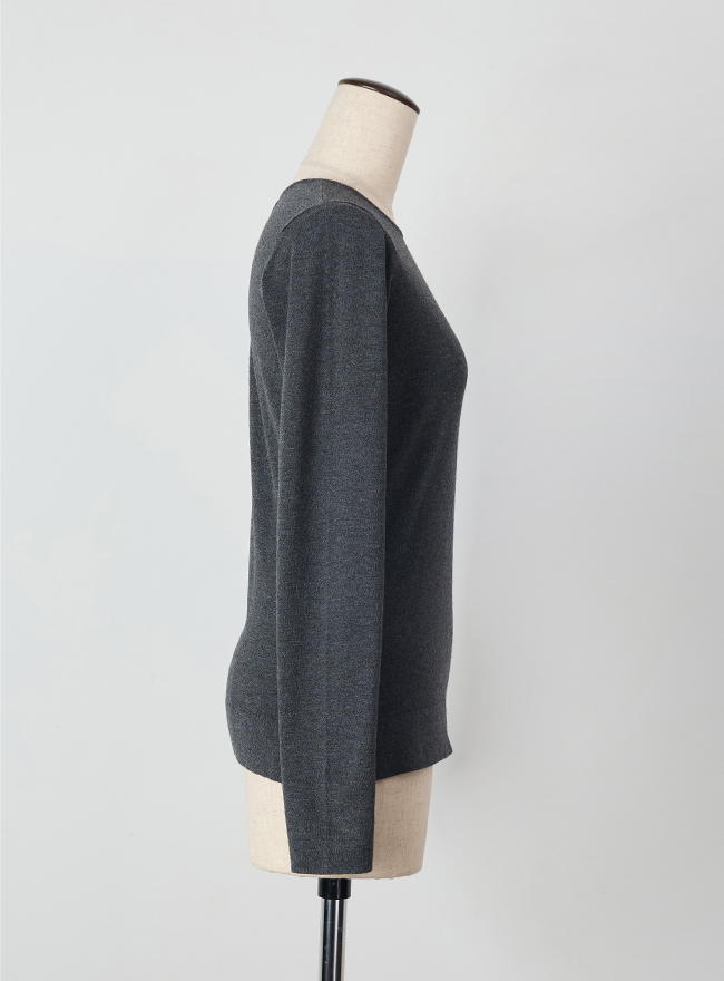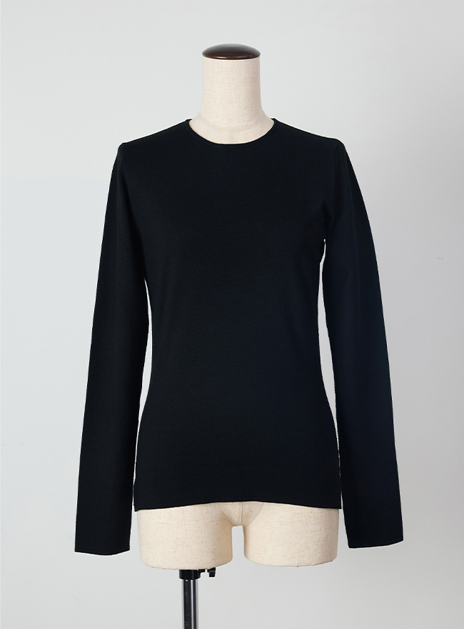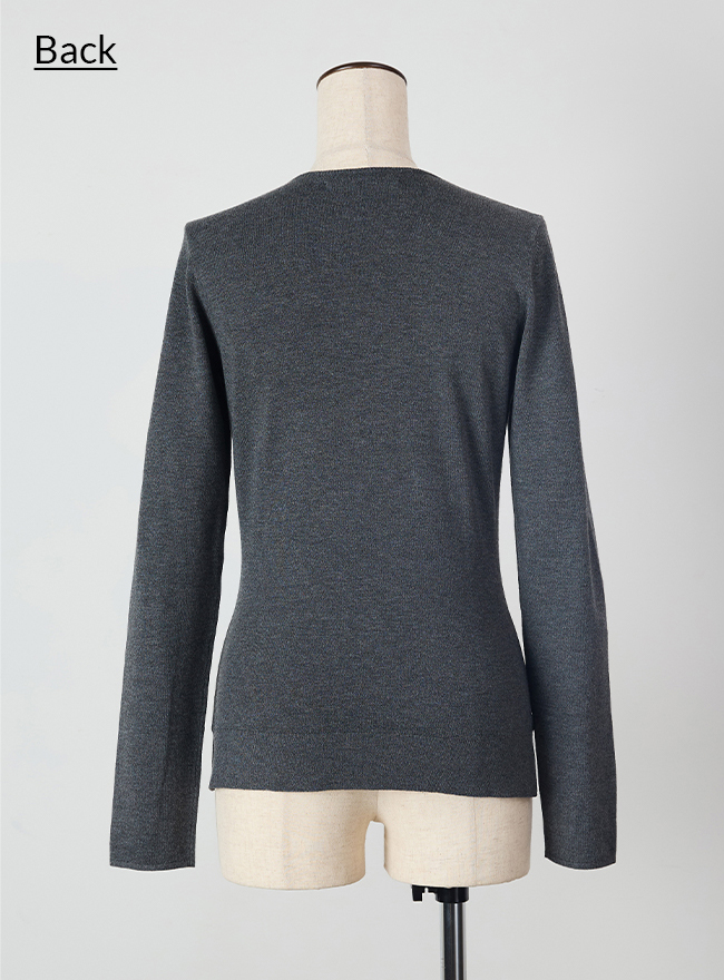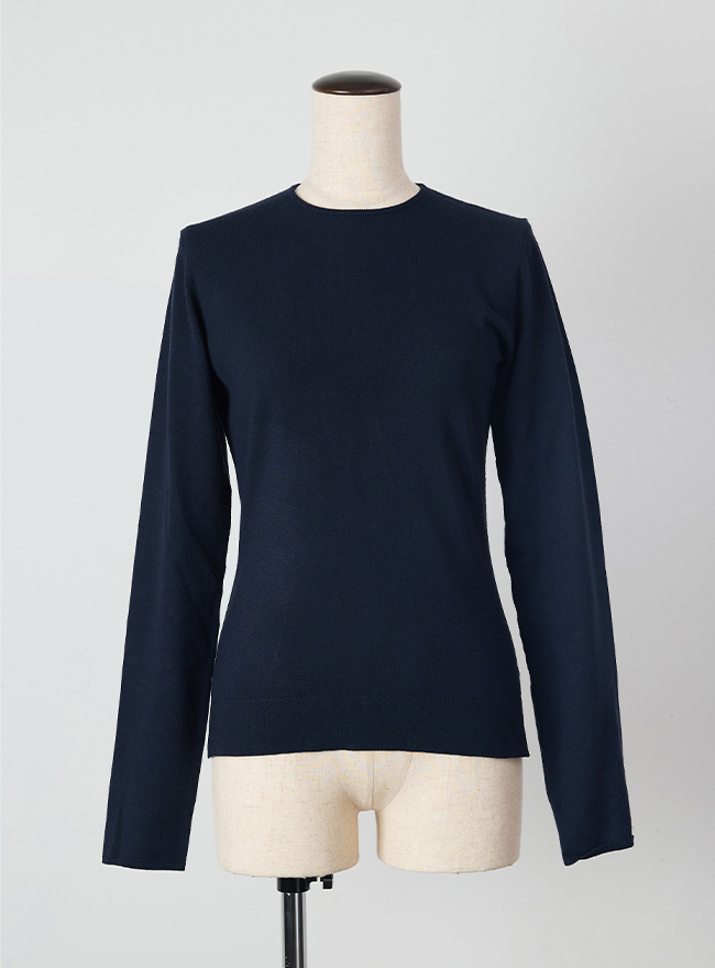 - 無駄のないシャープなデザインで、単品使いはもちろん、インナーとしても活躍するニット。