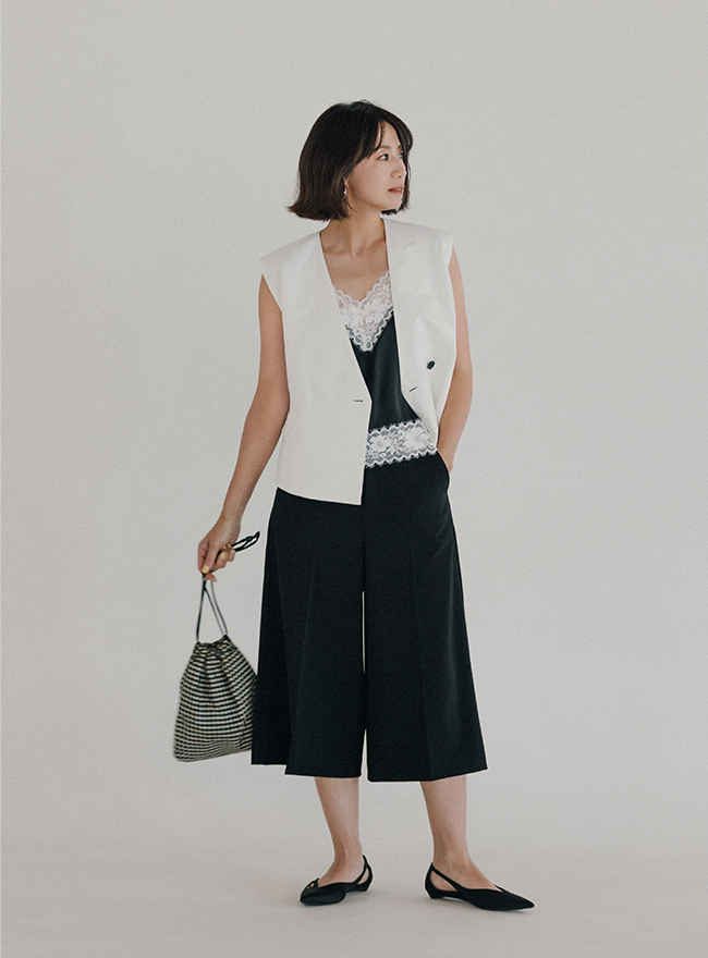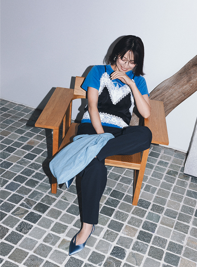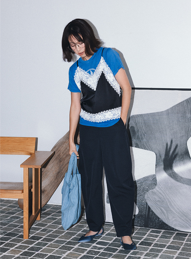 - インナーにレースを覗かせるコーディーネートや、ニットの上にレイヤードしたコーディネートなど、幅広いスタイリングが楽しめます。