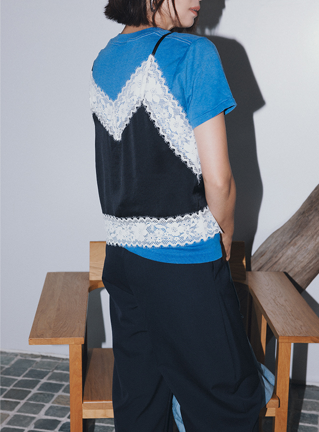 インナーとしてもレイヤードしても合わせやすいサテンレースキャミソールが完成