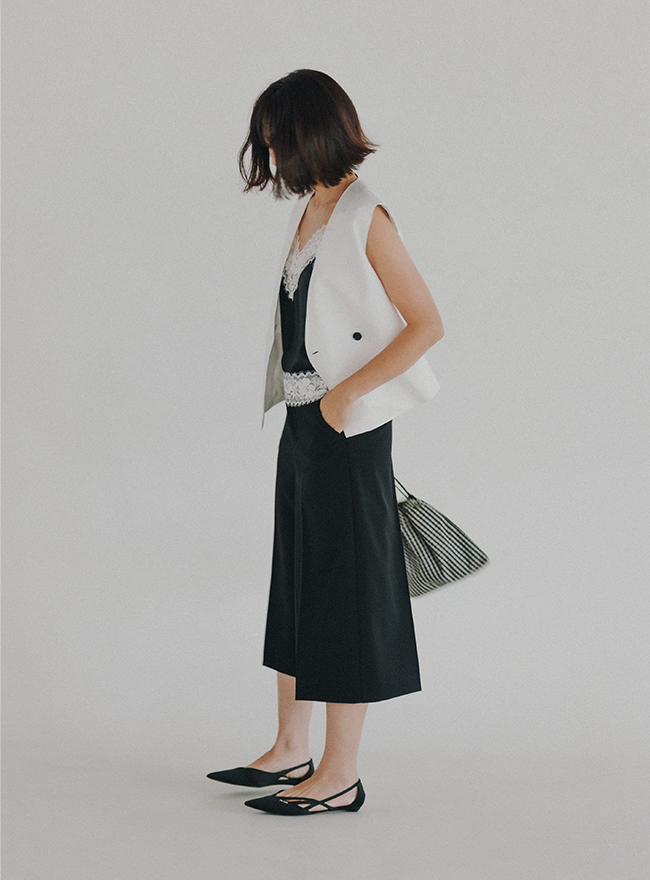 - やや裾広がりに仕立てているので、スカート派の方にもおすすめ。