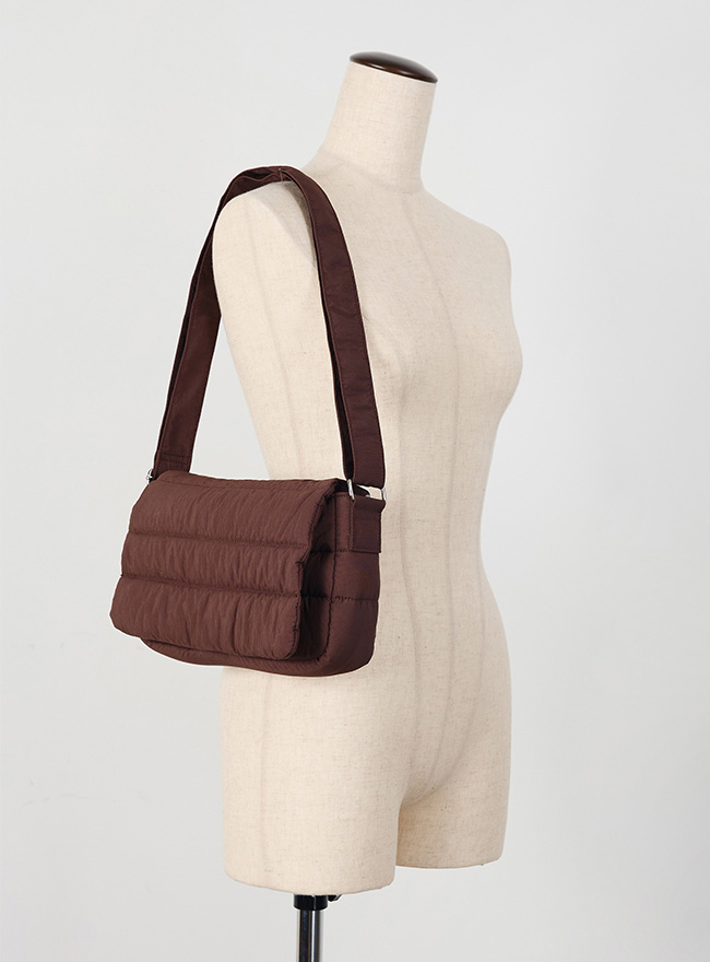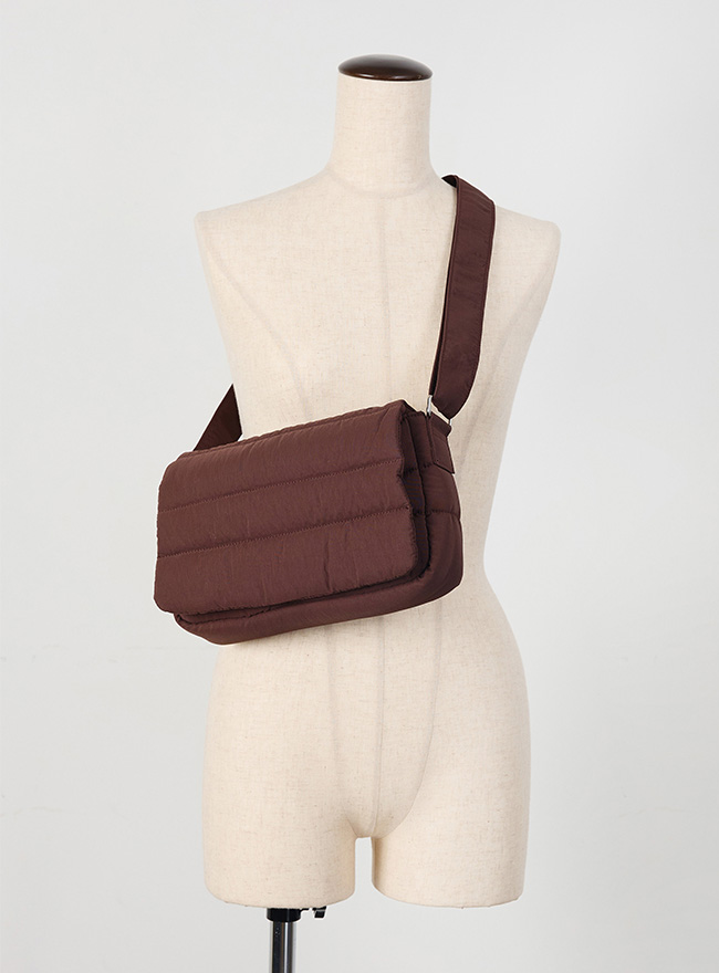- ナイロン100%の素材に中綿を入れ、ぷっくりとした立体感のある風合い。