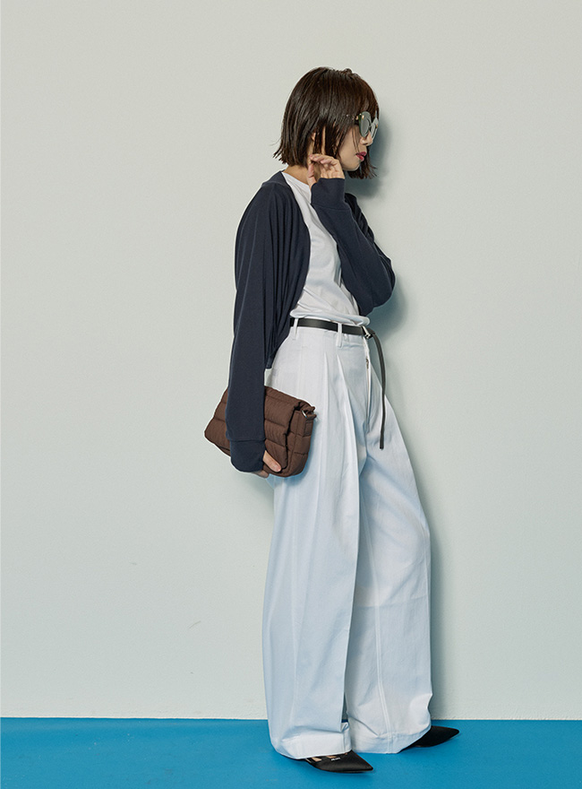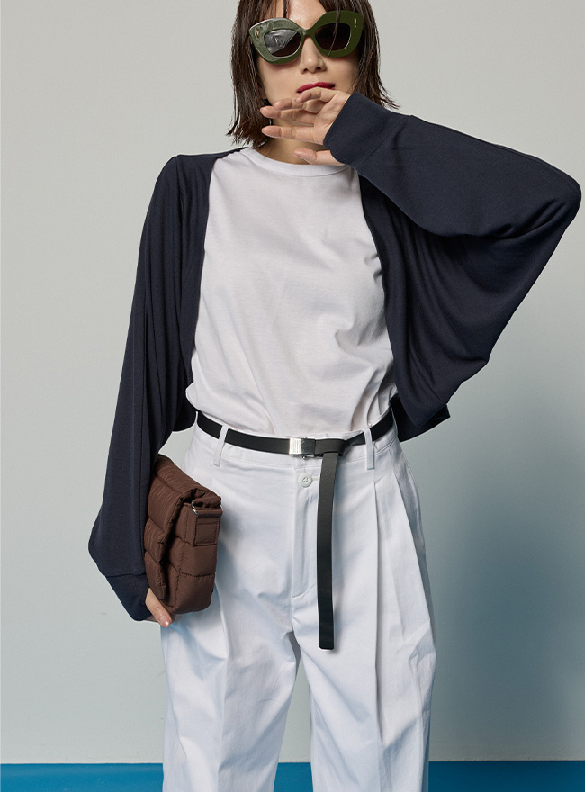 - ショート丈でこなれ感を演出し、デニム+カットソーのカジュアルスタイルからワンピースと合わせたシックな着こなしなどコーディネートによって印象が変化するのでこれからの季節に活躍する事間違いなしです。