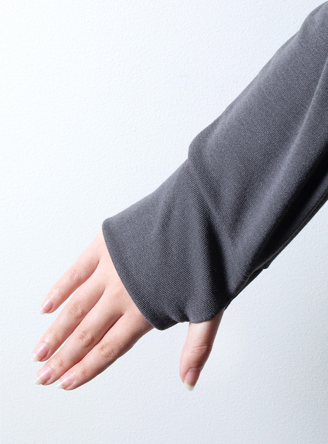 - 指穴があるので、袖のおさまりもよく、日焼け防止にもなります。