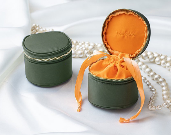 旅行や普段の持ち運びにぴったりな、Motherオリジナルアクセサリーポーチ。巾着や形崩れしないフォルム、ファスナーを開けたときのオレンジの裏地の配色など拘りを詰めたアイテムです。