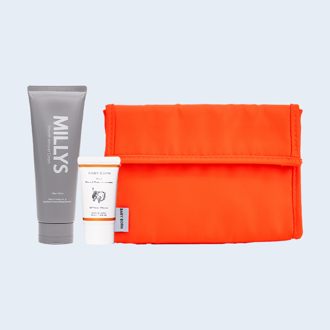 SET DETAILS MILLYS Smooth remover Cream 家族みんなでできる 除毛ケアを お子さまの成長につれて、「ムダ毛」が悩みの一つになることもあります。年頃のお子さまがサロンに通うにはまだ早く、カミソリを使うのも心配だという親の悩みに応え、家族みんなで使える除毛クリームを作りました。無添加の植物エキス配合で、肌を保護しながらムダ毛ケアができます。 詳しくはこちら